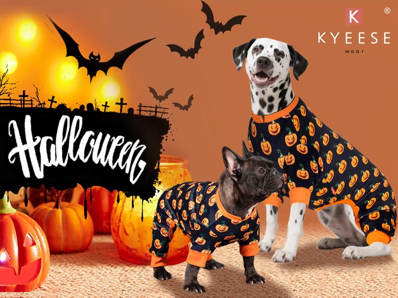 KYEESE Cozy Halloween Pjs for Dogs Pet – Adorable Funny Sleeveless Pumpkin Print Perfect for Spooky Snuggles & Cute Pics Easy Care Machine Washable Shirts Pajamas Sweater